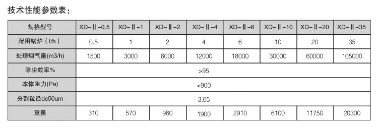 XD-Ⅱ多管旋風除塵器技術參數(shù):